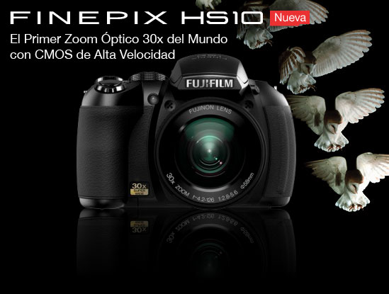 La cámara FinePix HS10 presenta el primer zoom óptico Fujinon 30x incorporado en una cámara compacta con sensor CMOS de alta velocidad.