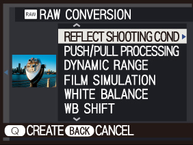 The FUJIFILM X-M1's built-in RAW data converter lets you view and edit your results without the need for your PC. The conversion of RAW data not only takes into account exposure compensation, white balance and other in-camera image quality control settings, but also lets the user apply Film Simulation modes in the converter mode.